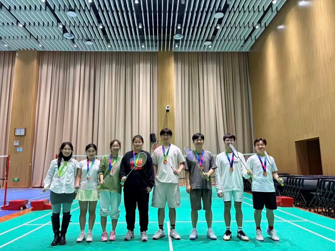 本次比赛共有12支队伍踊跃参与。赛场上,运动员们步伐灵活、反应迅捷,展现出精湛的球技与顽强的拼搏精神,引得现场掌声与喝彩不断。经过两轮紧张激烈的小组赛角逐,“小嘴到底叭叭不叭叭队”与“小螺号嘀嘀嘀吹队”成功晋级决赛。决赛于11月7日中午13:00,在科研楼羽毛球场举行。